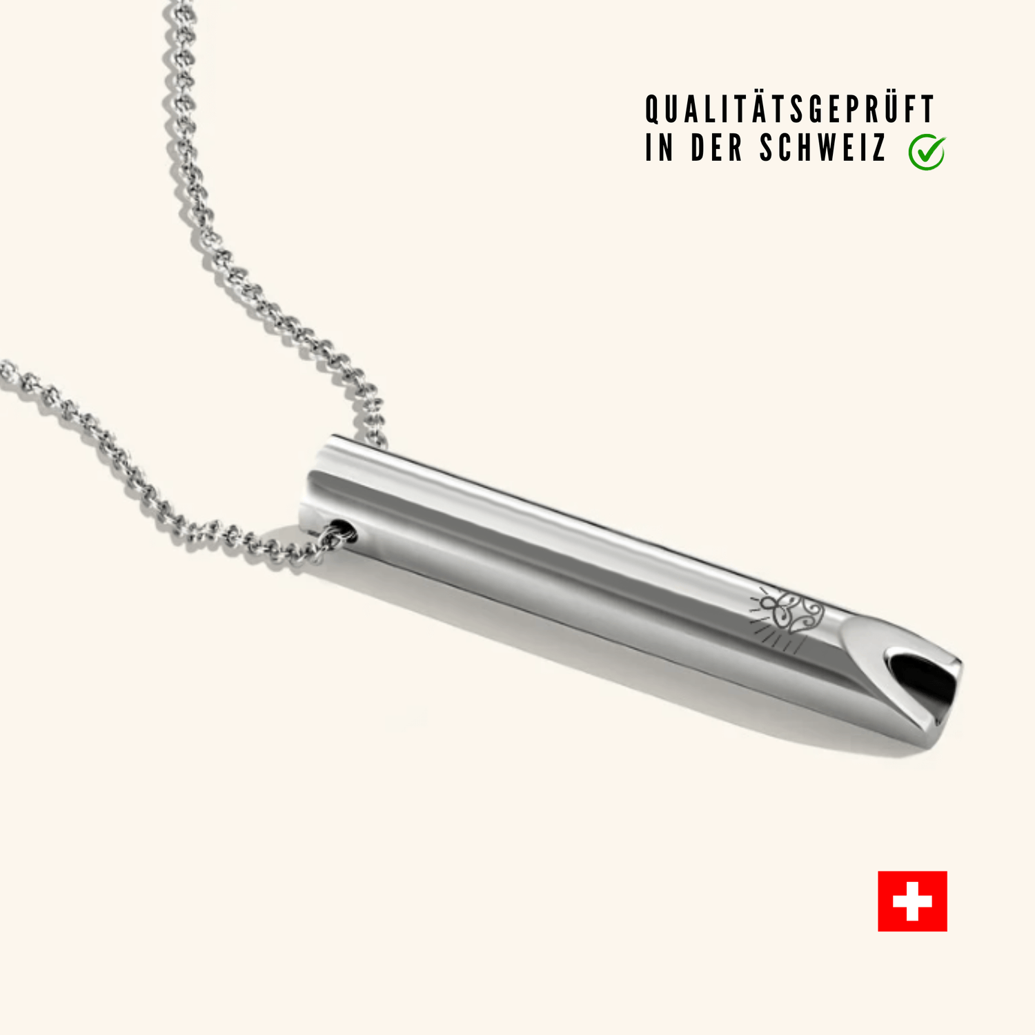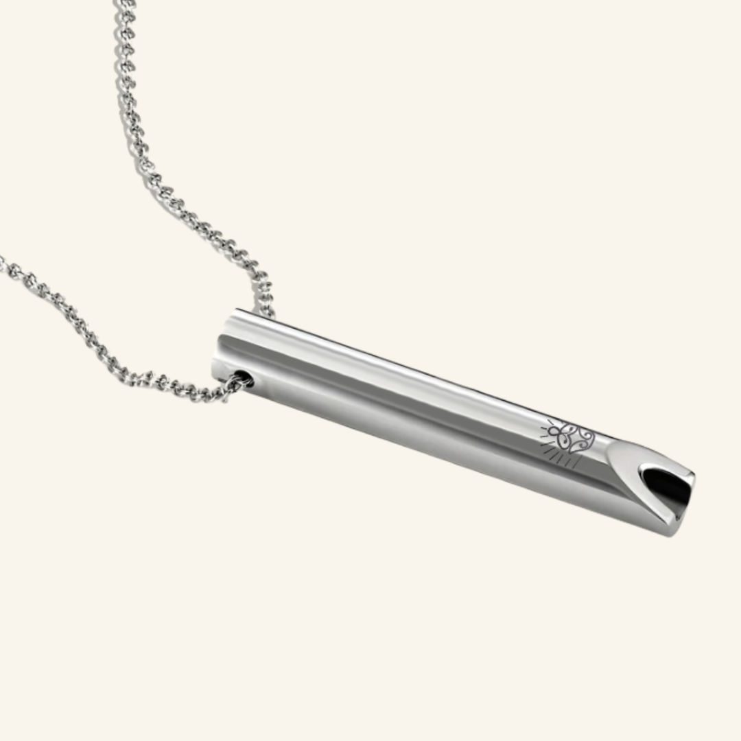 CalmPulse ist deine Atemkette für bewusste Regulation. Durch langsames Ausatmen über das Mundstück bringst du dein Nervensystem in Balance – diskret, stilvoll und jederzeit einsatzbereit.
